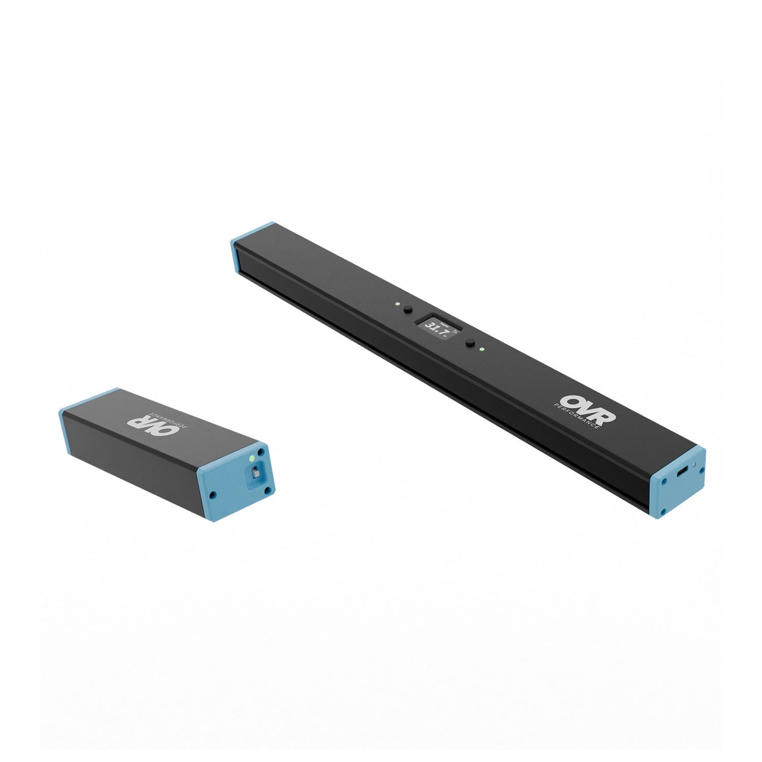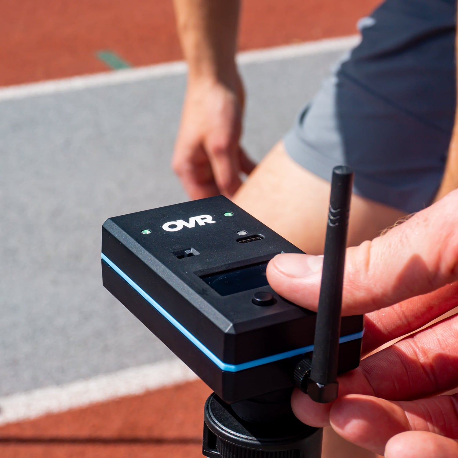 OVR Sprint is a laser stopwatch. Run through the invisible beam at the start and finish, and your exact time flashes on the built‑in screen. No phone needed.