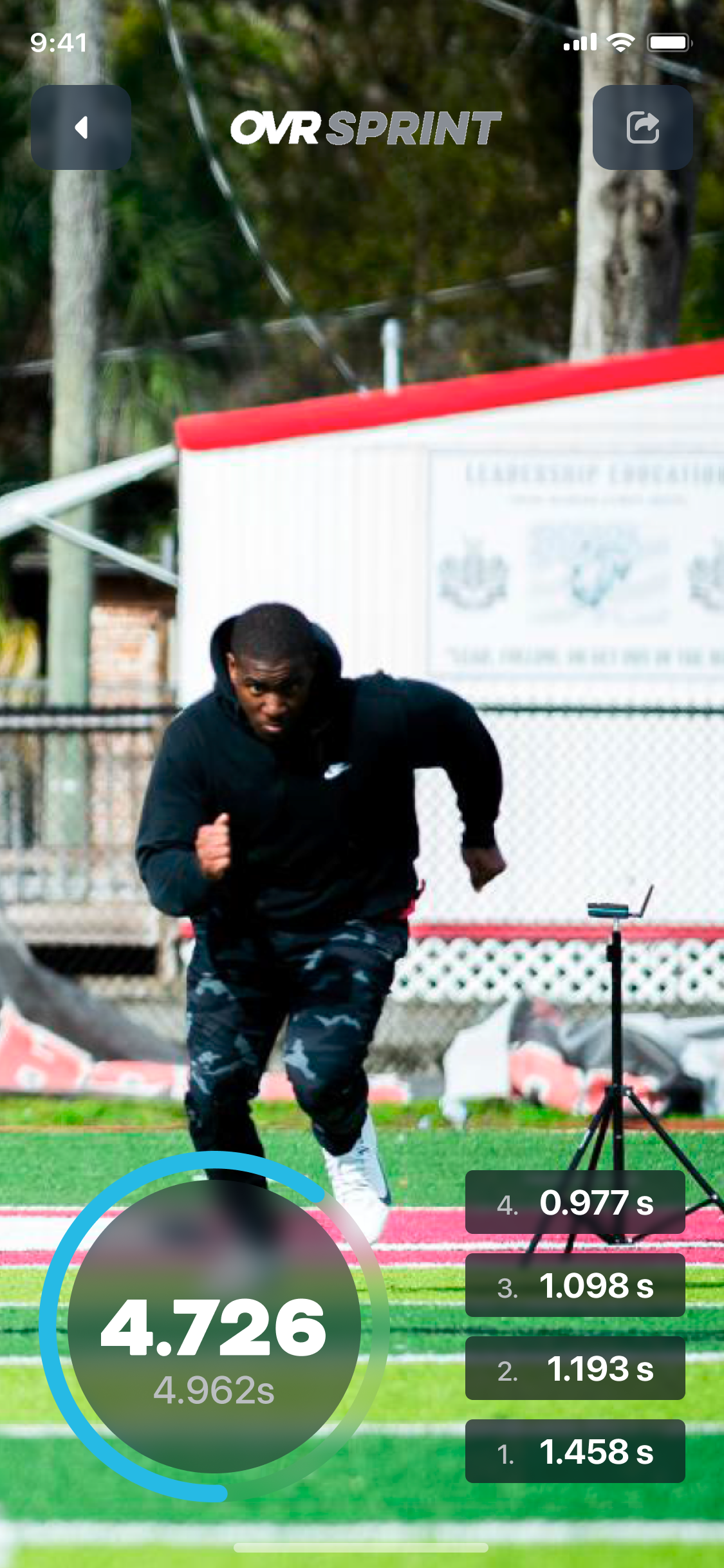 OVR Sprint records every time with ±0.001 second precision, matching the accuracy of professional sprint timing systems that cost 3‑4× more. That millisecond resolution means reliable PRs and trustworthy testing data.